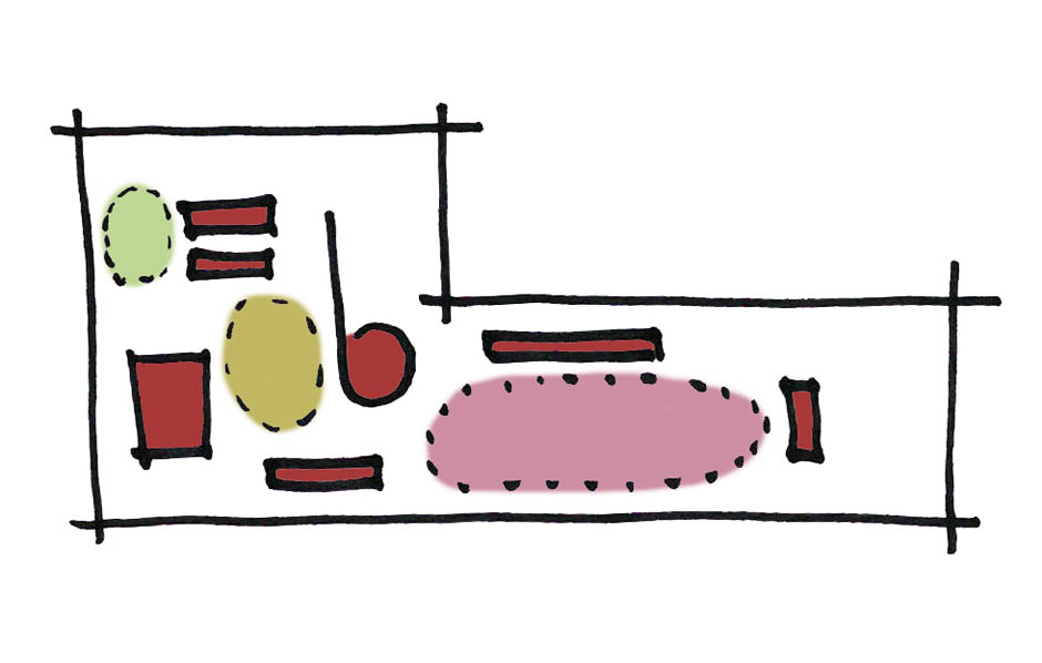 De paviljoens reageren volledig op hun omgeving.De vergaderkamer ligt als een nis aan de rand van de oase van het licht.